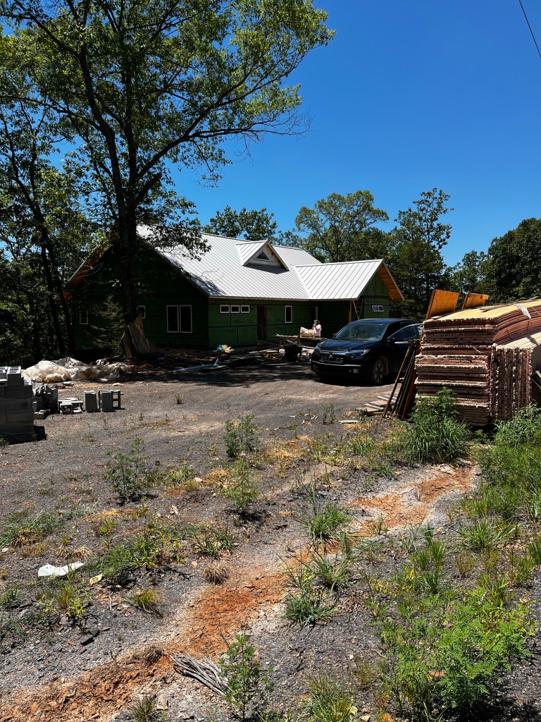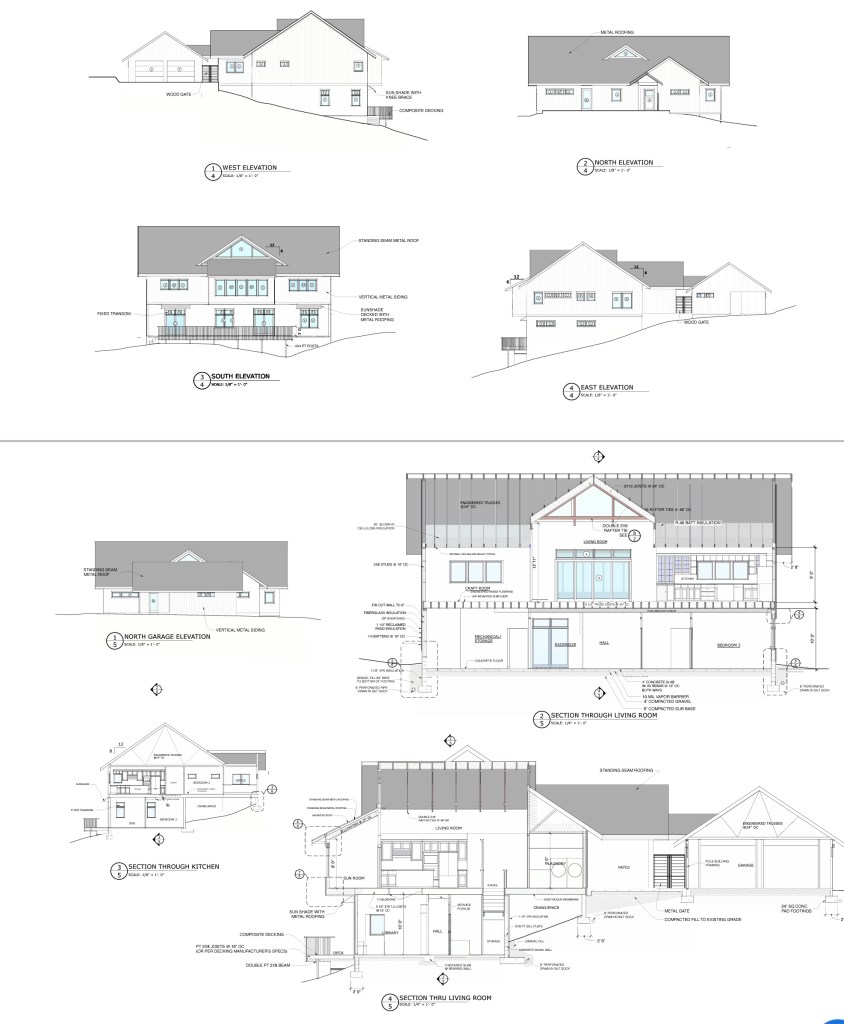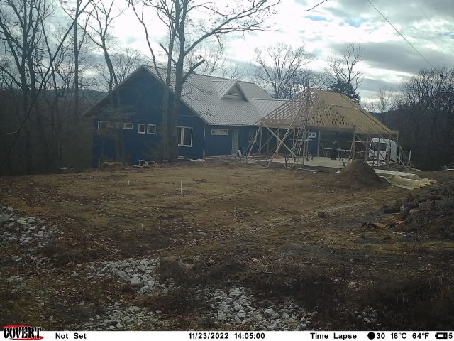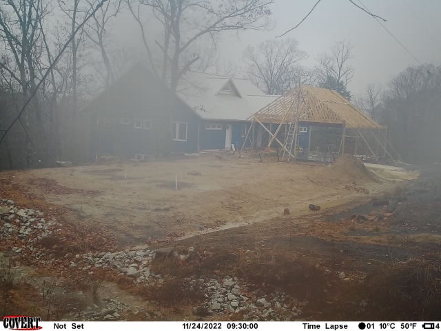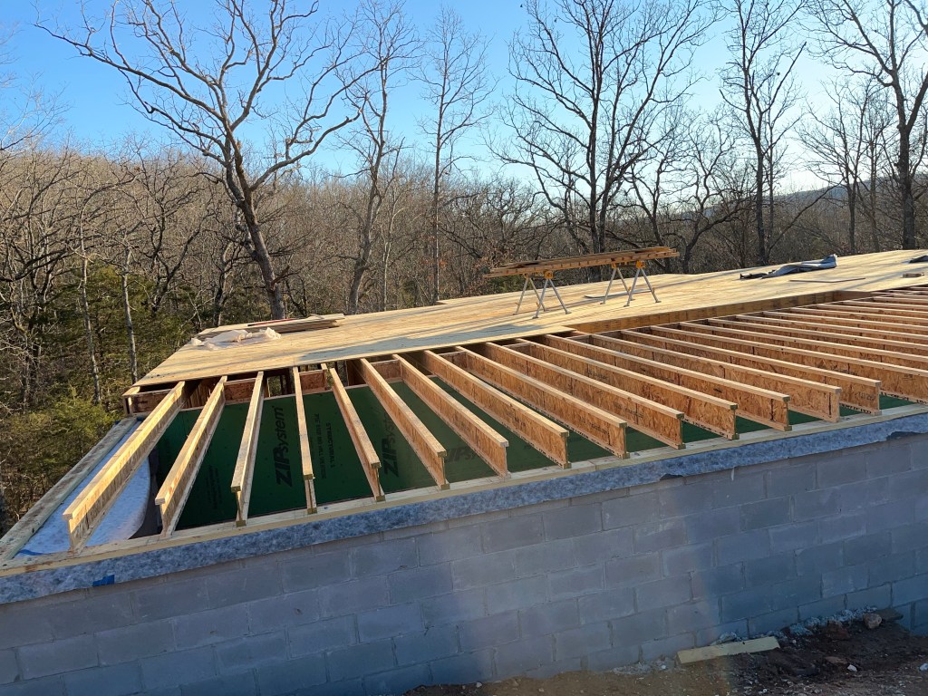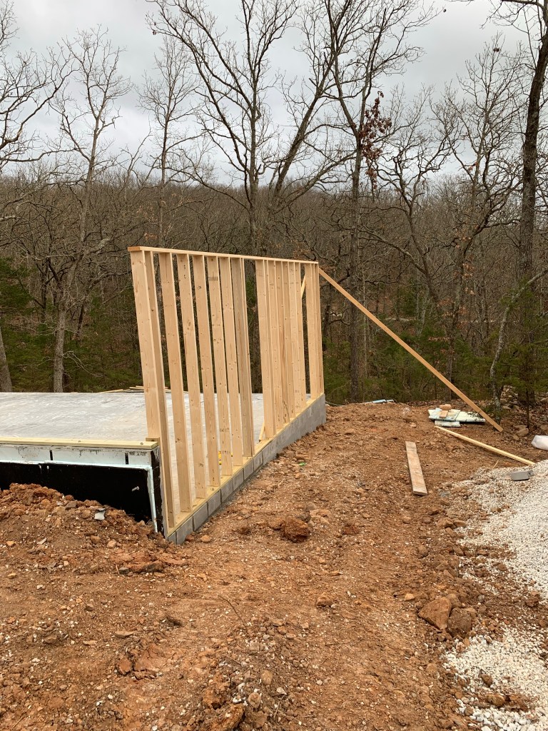 March 1st, progress on the main floor. Very cold and snowy winter for Arkansas and very slow progress.Same day showing the exterior.March 7th so rapid progress can be made. Still lots of rain. Same Day (no work it just rained again)Exterior view, cloudscape threatening more rain. That plank bridge is a thing for the next six months.March 10th March 17thMarch 20thMarch 31st More rainStill March 31st.March 31st, The Leaky Damn at the foot of the hill to the east.March 31st…..April 15th…roofing suppliesMay 1st Roofing Progressing…slowly, rain, then early heat wave, then Covid…Argh.May 5th, Blown out Leaky Damn after days of torrential downpours.Same day, down the hill from us, note debris from when the water over topped the road.May 26th, roof finished and starting to put the utilities in, white pipes are for the air exchange system that makes this a ‘passive house.’June 12th. Finishing the internal membrane that is another major part of the passive house system.July 10th, Exterior view showing the finished roof and the windows in. No siding,trim, soffit etcMark in his ‘Field of D…Weeds.”July 10th Drywall going up. South side, sunroom and celestory window.North side, small celestory window.August 14th. External installation sheath, another passive house feature.Aug. 14th, other end of the house, with steel siding. We Septic System InstallSeptic system settling tank, digester, aerobic digester and UV treatment tank.Cabinets…just some, this 2 months after they were to start, still far from done 2 months later…arghReworking the depth of the septic system finger field.October 13th, side of the house where heat pump condensers will sit.Gravel to finalize the courtyard and garrageCap on the finger field, for grass lawn.Garage foundationNov. 12th, starting on the garage structure.Nov 12th. Side of the house, Linda Contemplating…Nov 17thNov 17th, decorative truss test piece for approval. interior painting finished. Except for cabinets not yet installedGarage Trusses, Nov ~18thProgress on the garage.Thanksgiving day. I have a lot to be thankful for, and a lot to look back on with thankfulness even when there are unhappy events. This project is one of love and thankfulness that I hope will last a good while and provide a setting for good memories to come.