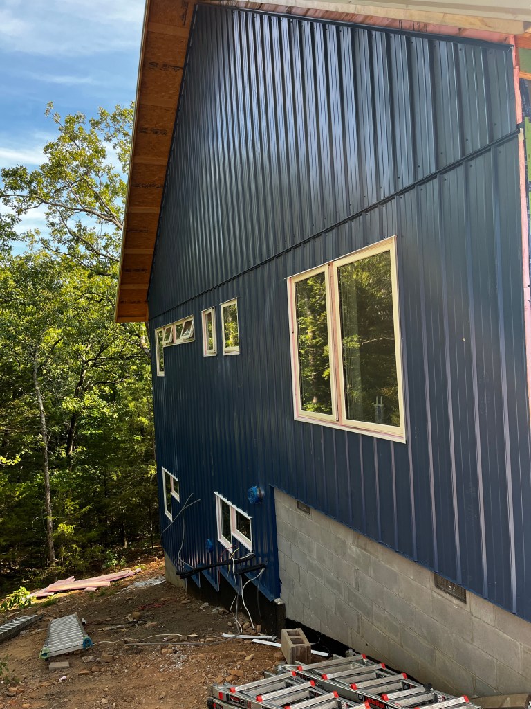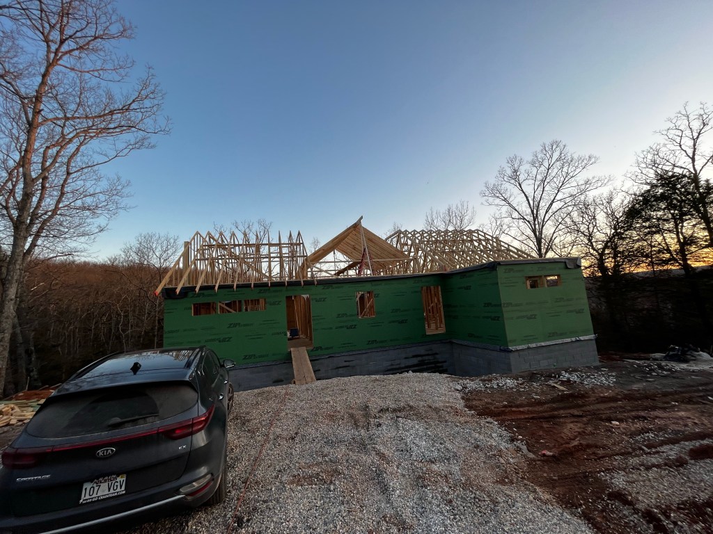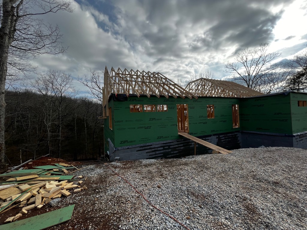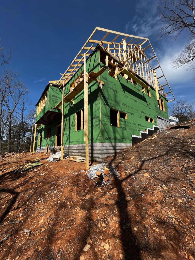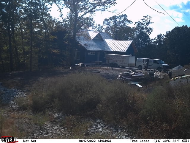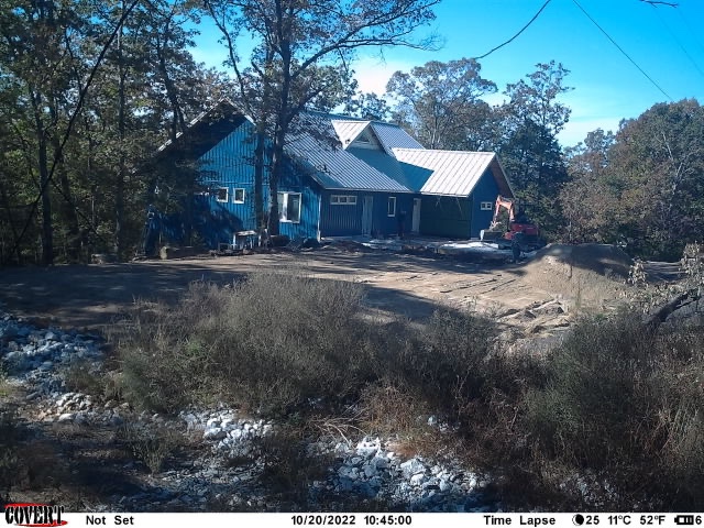 March 1st, progress on the main floor. Very cold and snowy winter for Arkansas and very slow progress.Same day showing the exterior.March 7th so rapid progress can be made. Still lots of rain. Same Day (no work it just rained again)Exterior view, cloudscape threatening more rain. That plank bridge is a thing for the next six months.March 10th March 17thMarch 20thMarch 31st More rainStill March 31st.March 31st, The Leaky Damn at the foot of the hill to the east.March 31st…..April 15th…roofing suppliesMay 1st Roofing Progressing…slowly, rain, then early heat wave, then Covid…Argh.May 5th, Blown out Leaky Damn after days of torrential downpours.Same day, down the hill from us, note debris from when the water over topped the road.May 26th, roof finished and starting to put the utilities in, white pipes are for the air exchange system that makes this a ‘passive house.’June 12th. Finishing the internal membrane that is another major part of the passive house system.July 10th, Exterior view showing the finished roof and the windows in. No siding,trim, soffit etcMark in his ‘Field of D…Weeds.”July 10th Drywall going up. South side, sunroom and celestory window.North side, small celestory window.August 14th. External installation sheath, another passive house feature.Aug. 14th, other end of the house, with steel siding. We Septic System InstallSeptic system settling tank, digester, aerobic digester and UV treatment tank.Cabinets…just some, this 2 months after they were to start, still far from done 2 months later…arghReworking the depth of the septic system finger field.October 13th, side of the house where heat pump condensers will sit.Gravel to finalize the courtyard and garrageCap on the finger field, for grass lawn.Garage foundationNov. 12th, starting on the garage structure.Nov 12th. Side of the house, Linda Contemplating…Nov 17thNov 17th, decorative truss test piece for approval. interior painting finished. Except for cabinets not yet installedGarage Trusses, Nov ~18thProgress on the garage.Thanksgiving day. I have a lot to be thankful for, and a lot to look back on with thankfulness even when there are unhappy events. This project is one of love and thankfulness that I hope will last a good while and provide a setting for good memories to come.