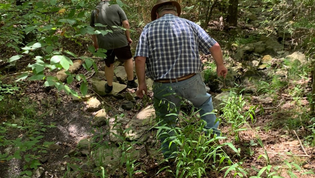From the ‘road’ I’m about where the garage will start.The ‘road’ down to the bottom of the hill ‘it’s all Mine…bwahahaha…’etc.Me, again, southwest corner of the house from the garageOpposite direction, yes it’s that rocky