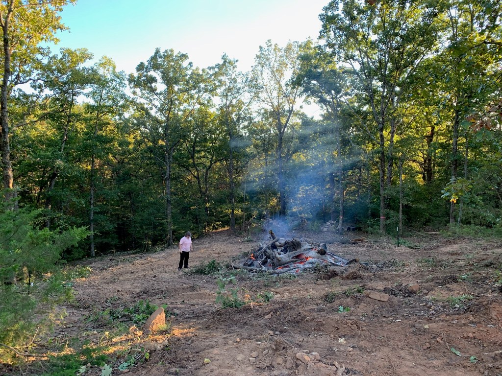 The CLAW, it Runs like a Deere…21st22nd the lower section of the house site is cleared.It’s HOT in there.Linda contemplating marshmallow roastingMe lounging with the equipment